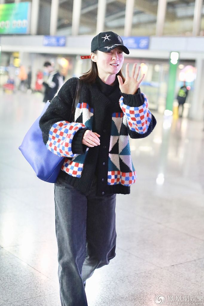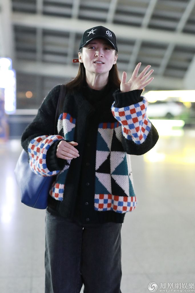 2019年12月23日,北京,蒋勤勤现身机场。44岁蒋勤素颜生图扛打皮肤状态佳,对镜微笑招手,装扮休闲低调不失复古气
