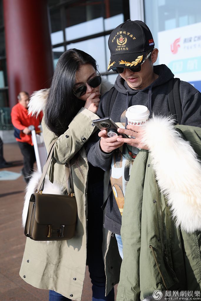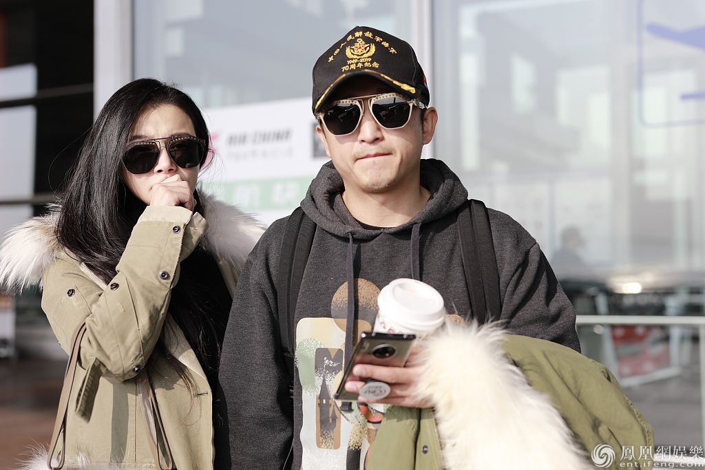 2019年12月23日,北京,邹市明、冉莹颖夫妇现身机场。