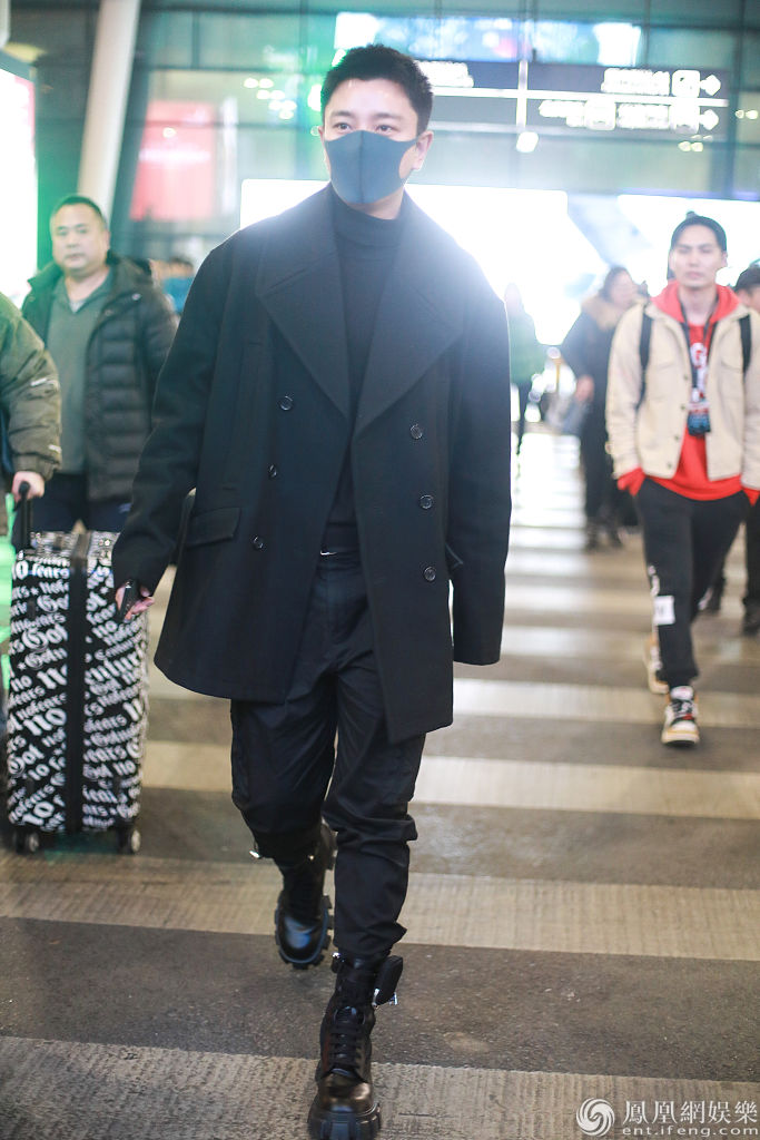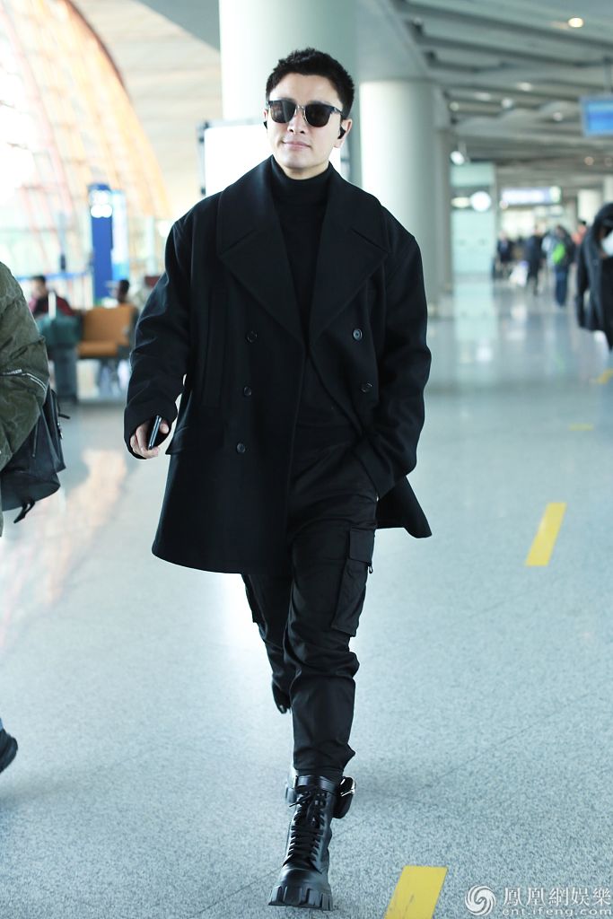 2019年12月22日,贾乃亮现身机场,由北京飞往成都。他黑超遮面对镜微笑心情佳,全黑look造型低调不失气场,单手插兜霸气十
