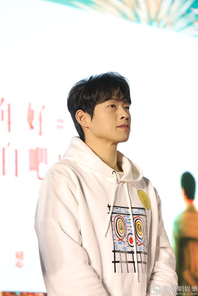 魏大勋身穿白色卫衣。