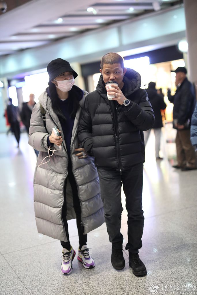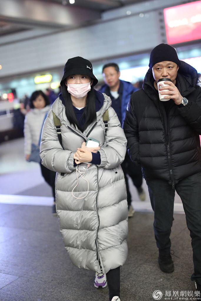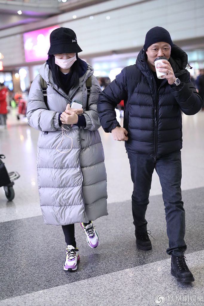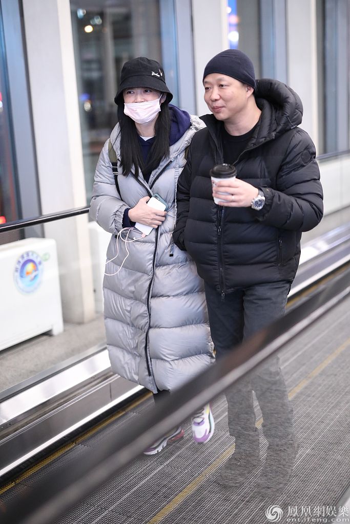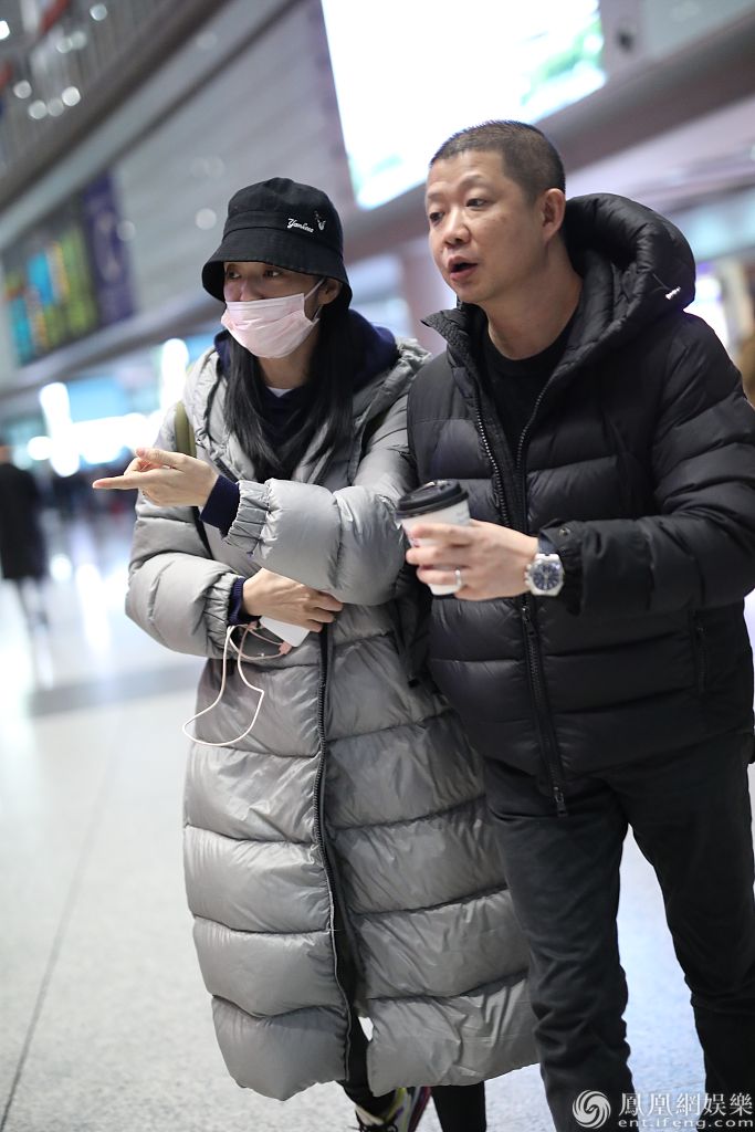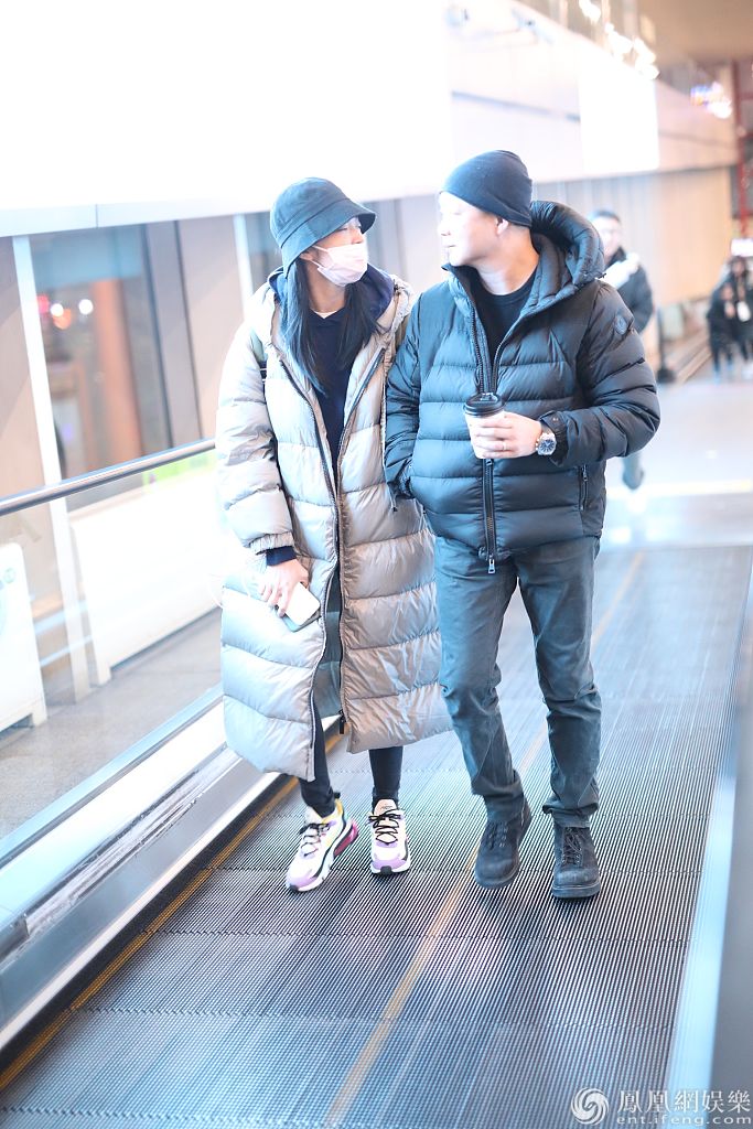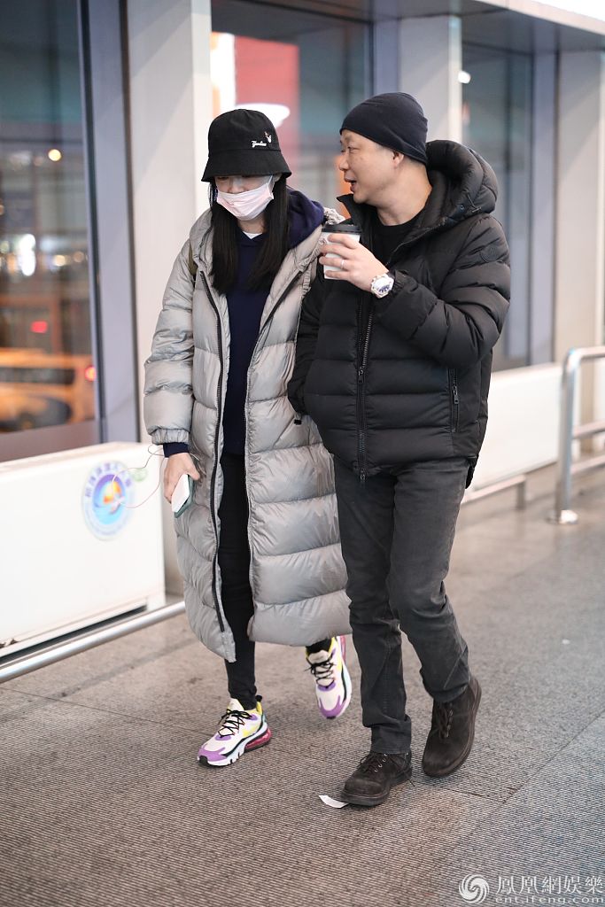 2019年12月21日,北京,姚晨与老公曹郁现身机场。姚晨戴着帽子口罩,身穿长款羽绒服低调保暖,曹郁来到机场亲自接老婆回家,两人恩爱并肩十分甜