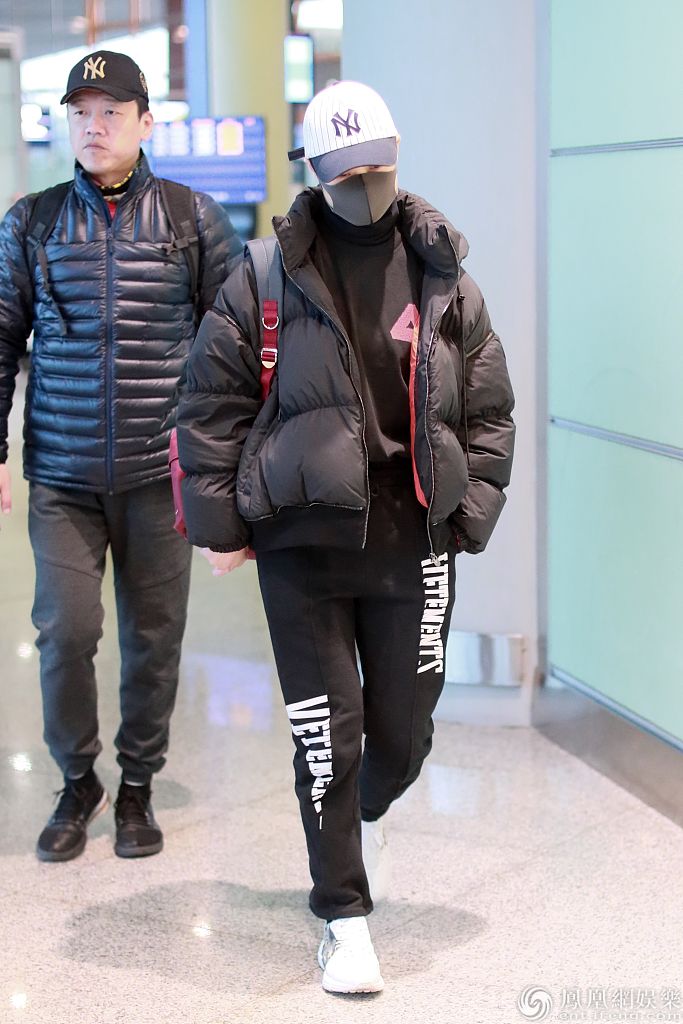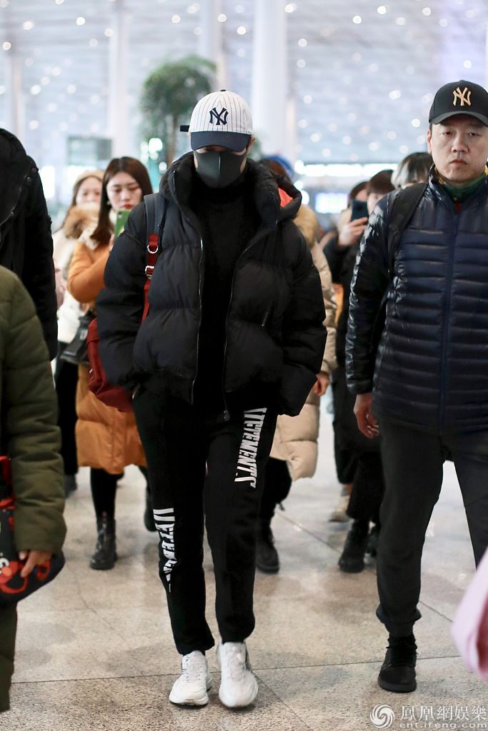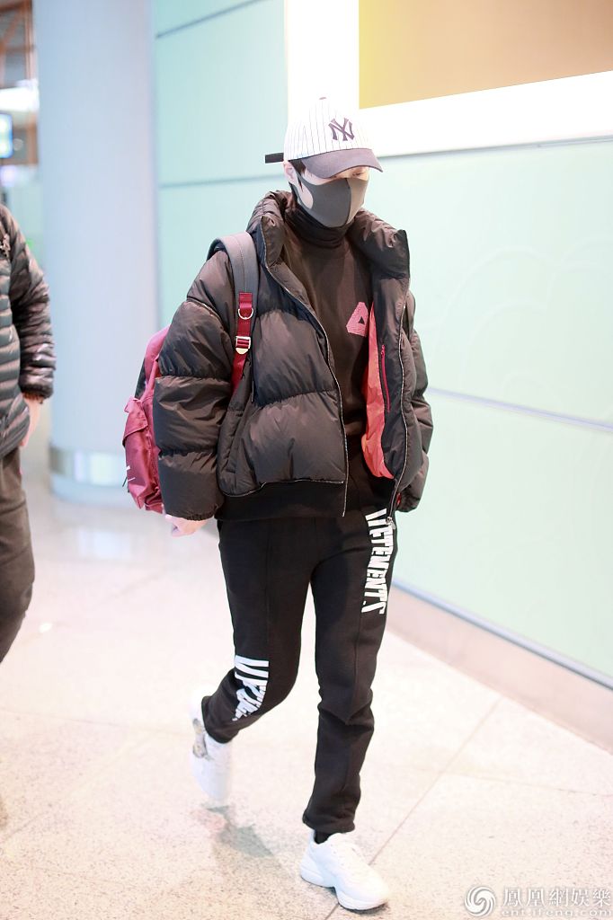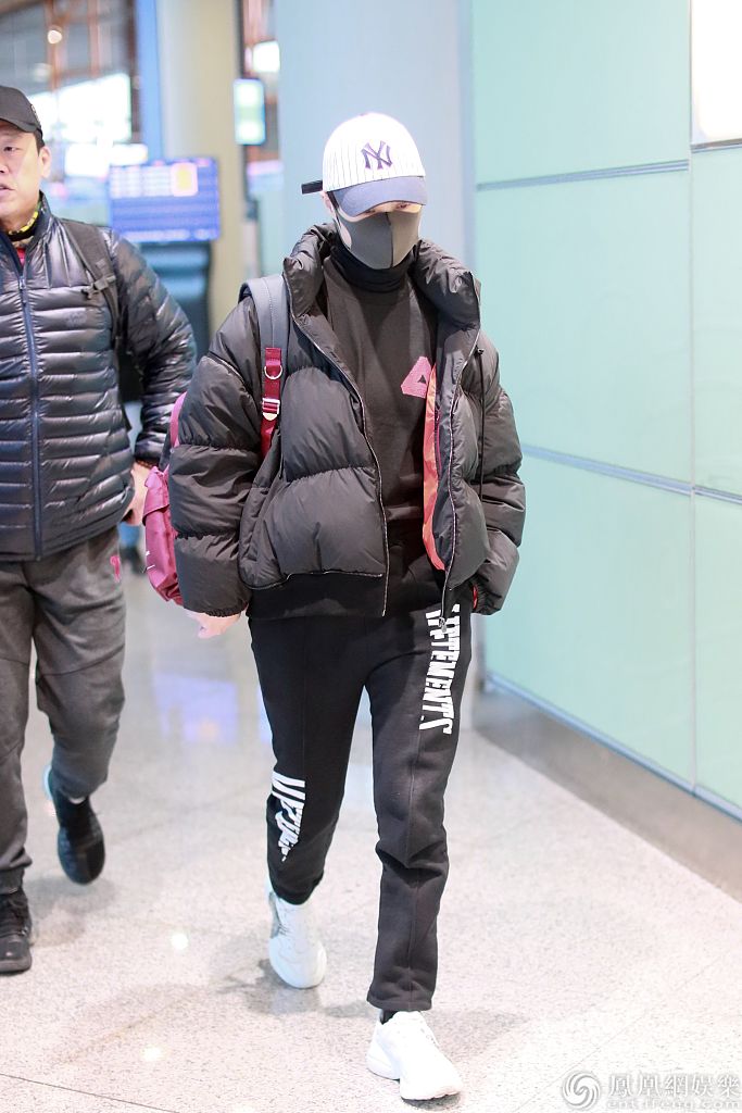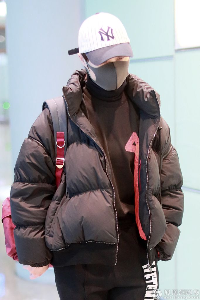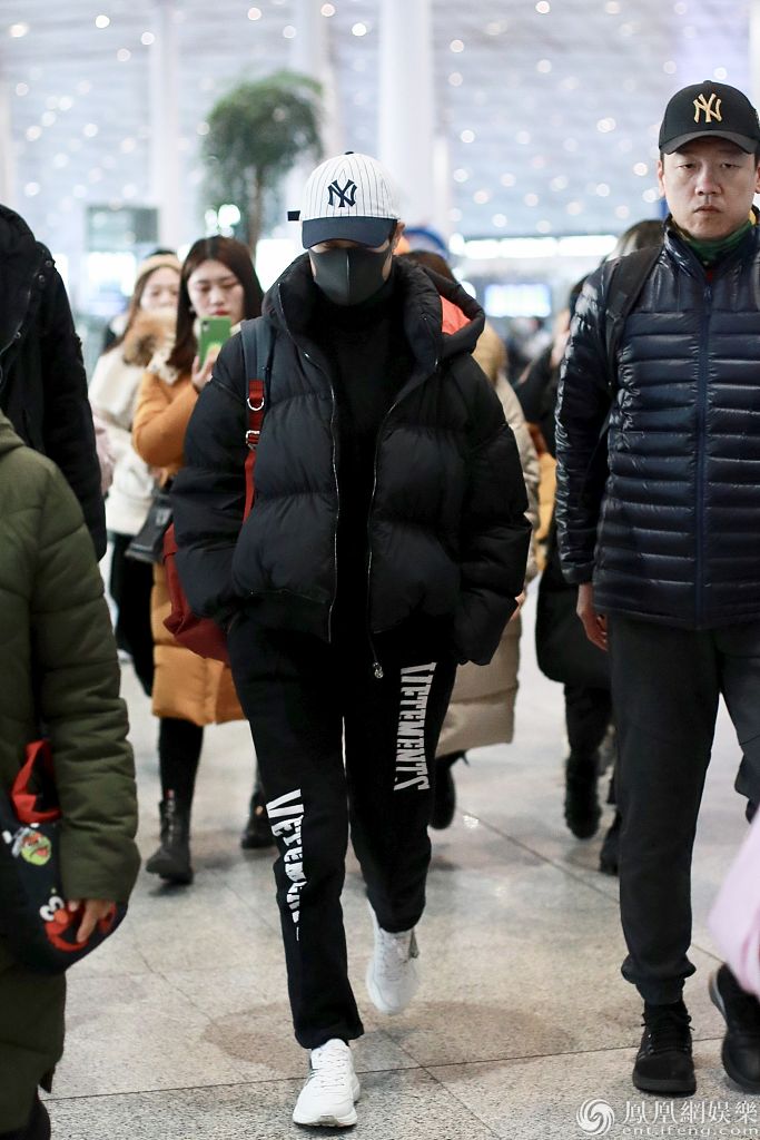 2019年12月21日,北京,李宇春现身机场。她戴着棒球帽,身穿黑色羽绒服搭配红色背包,低调赶路获迷妹围