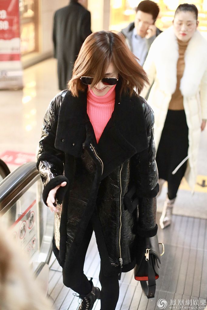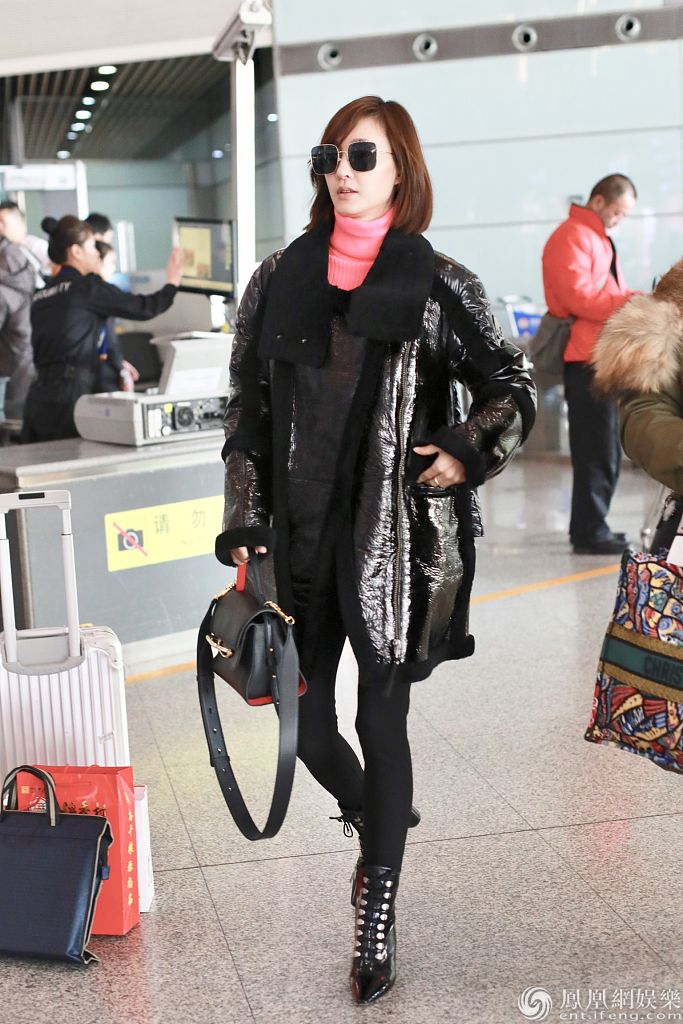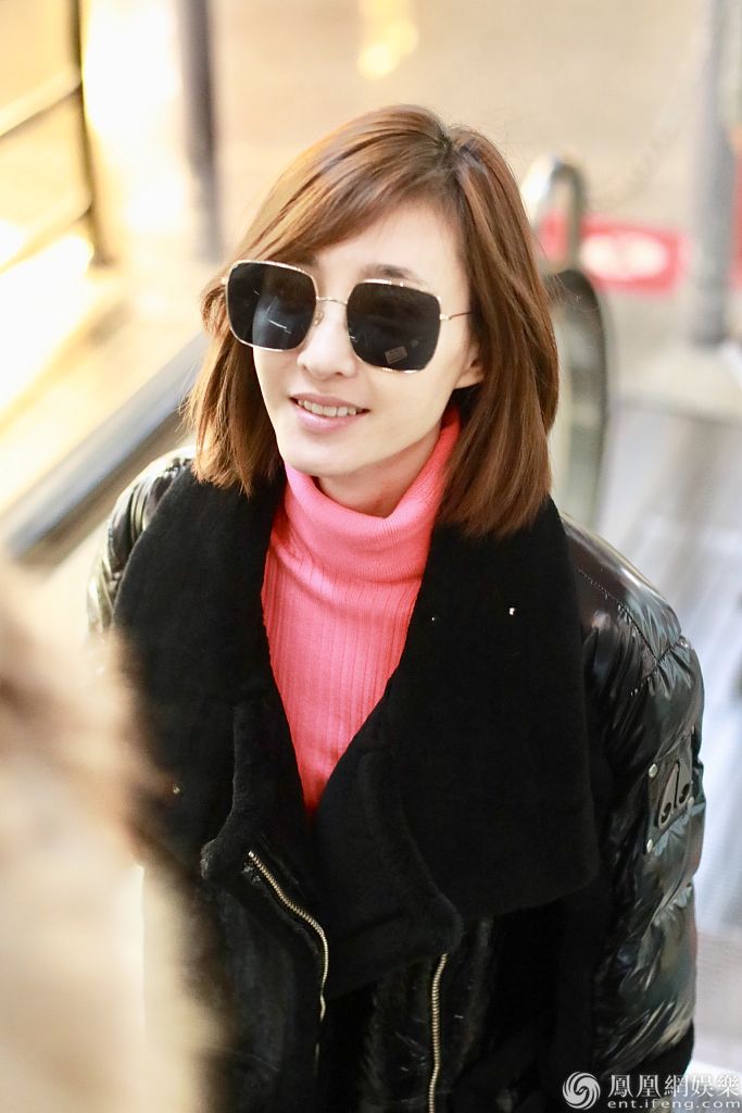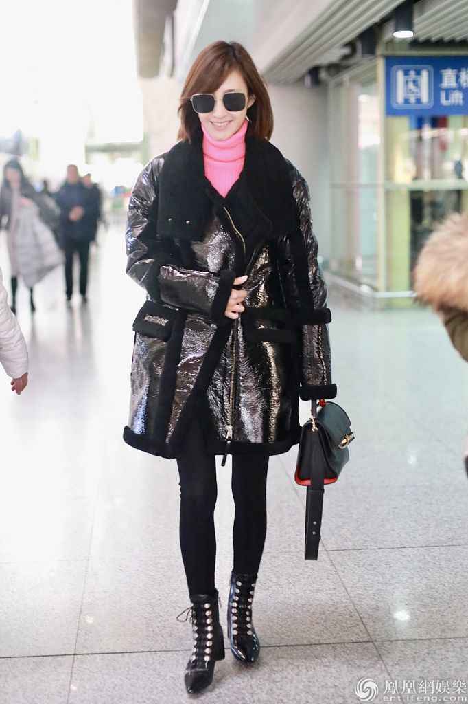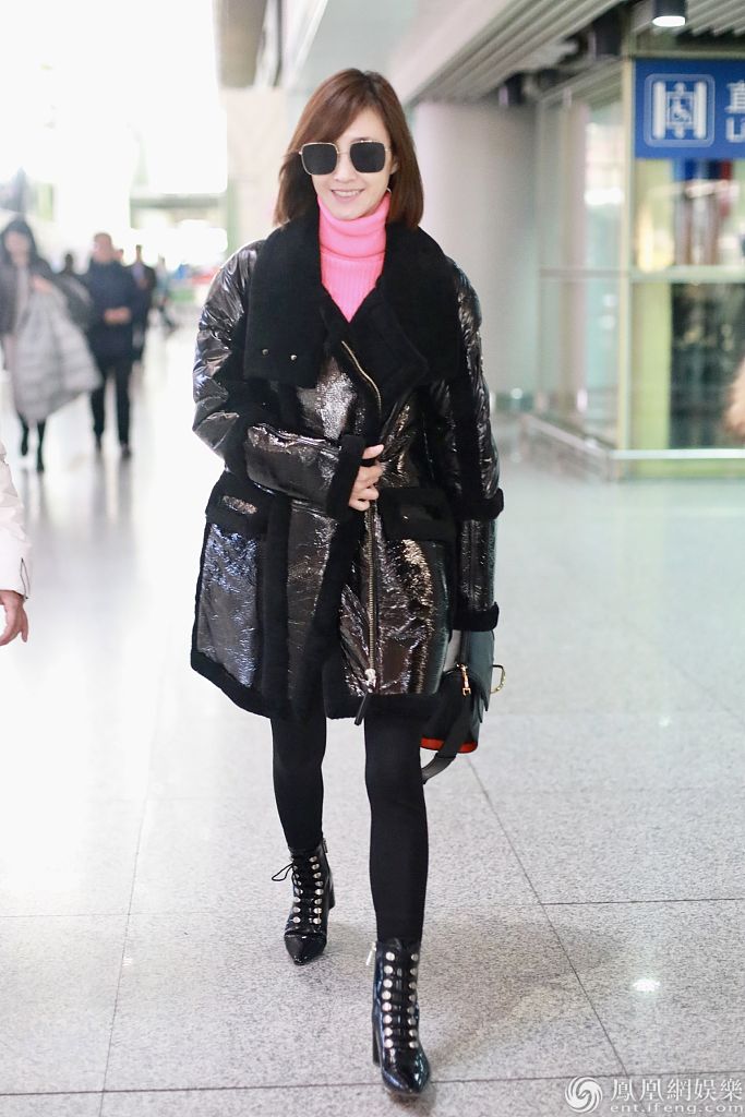 2019年12月20日,北京,王丽坤亮相机场。王丽坤身穿黑色翻领皮大衣贵气满满,搭配上芭比粉色高领毛衣气色很好,面对跟拍微笑以对,心情很