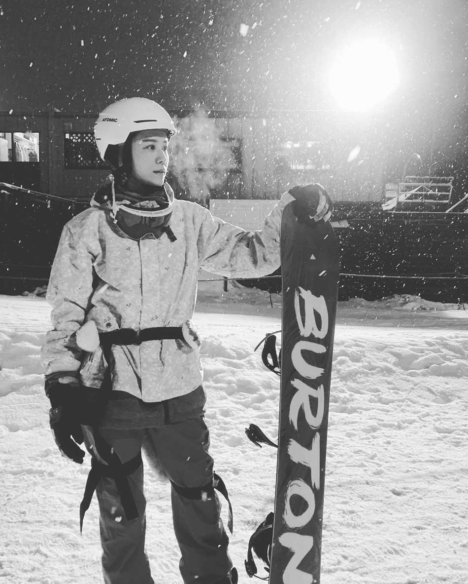 张馨月滑雪照。