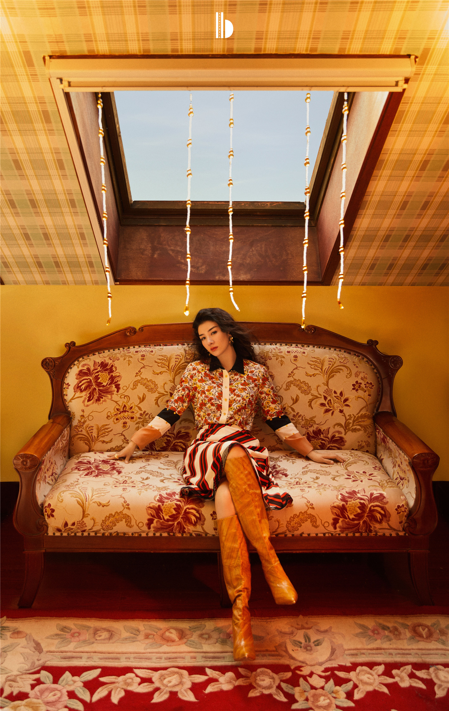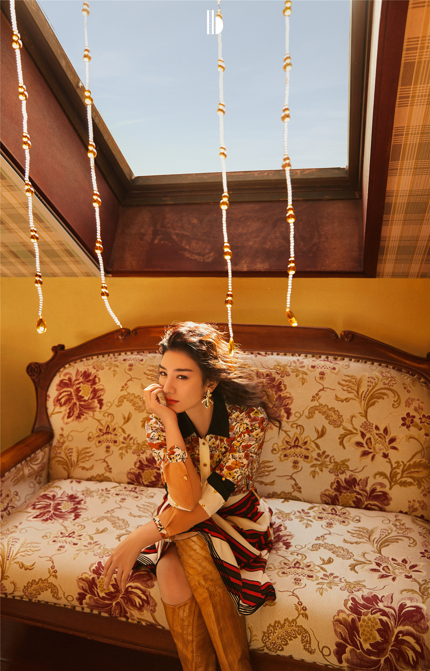 在一方天地间,她沉思、放空、凝神、静默的深邃眼神如电影呈现般的故事感,铺陈于眼前。