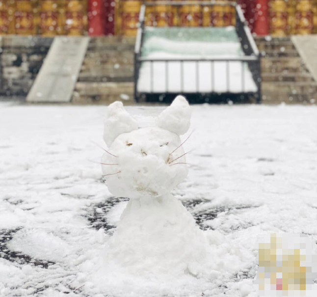邓伦工作室随后也发布了几张邓伦雪人的成品图,邓伦在院子里找到的松针作为小猫的胡须被均匀的插在了雪人的脸上,十分可爱。