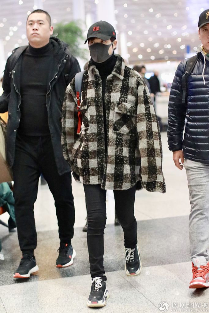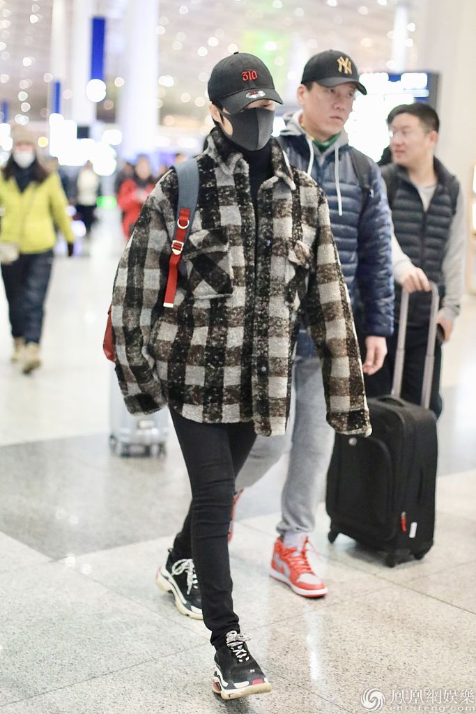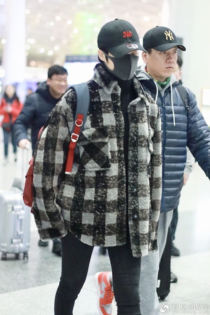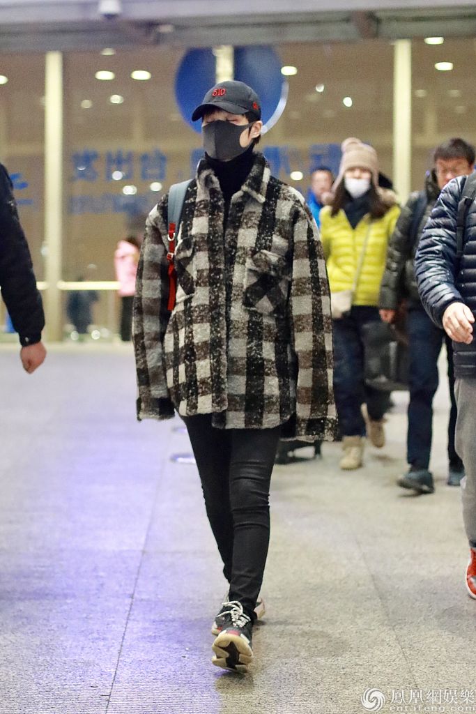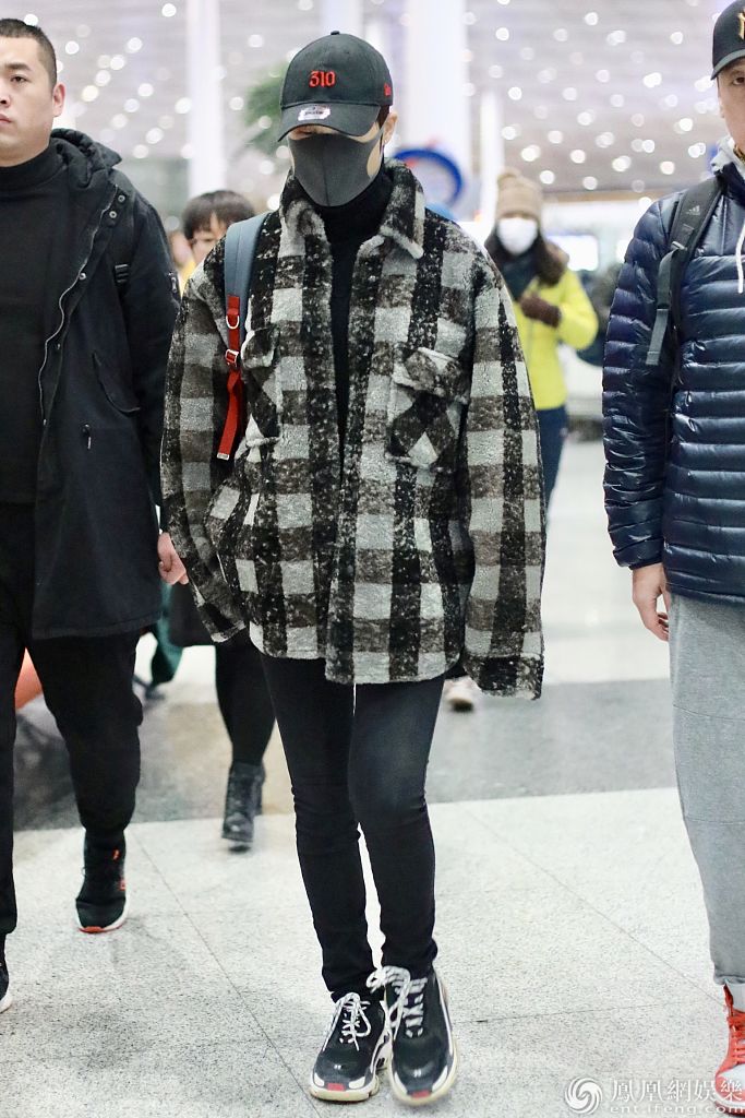 2019年12月16日,北京,李宇春现身机场。她身穿格子外套搭配棒球帽和口罩,背着背包亮相十分帅