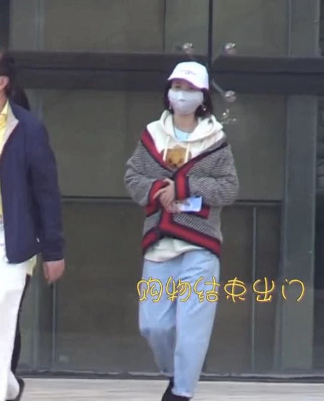 开衫半搭肩膀,有一股慵懒的味道,唐艺昕走起路来也是小心翼翼。