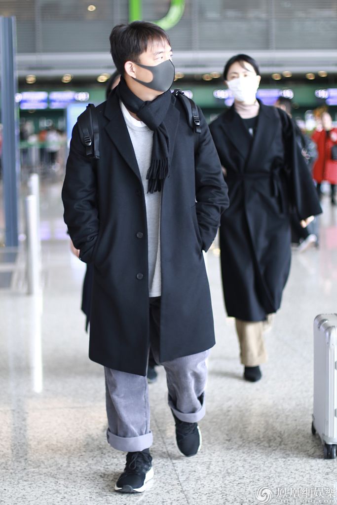 2019年12月12日,上海,黄磊、孙莉现身机场。黄磊、孙莉夫妻俩同穿黑色大衣偷偷撒狗粮,戴一黑一白口罩画风和谐。两人一前一后走,孙莉“望夫眼”看着黄磊满满爱意藏不