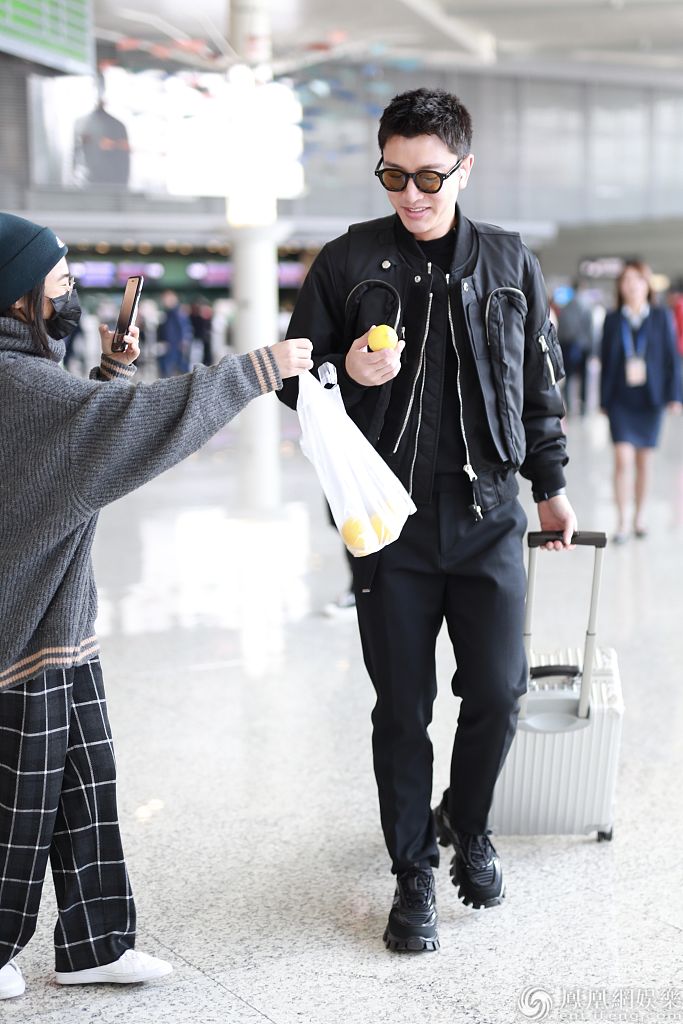 当天,他现身机场赶行程,就有迷妹送上柠檬,也是很有趣了。