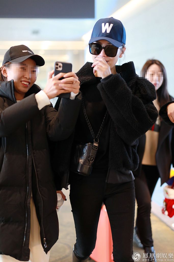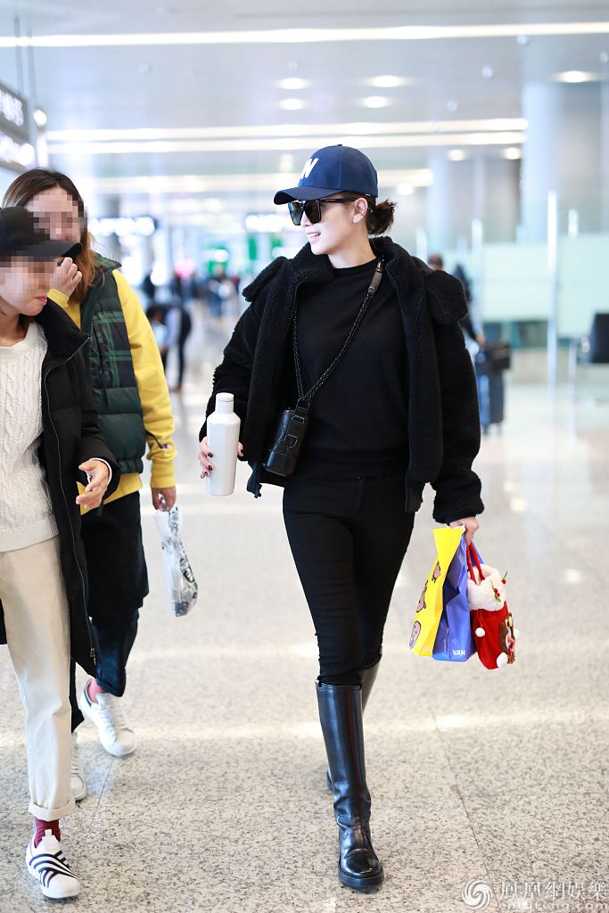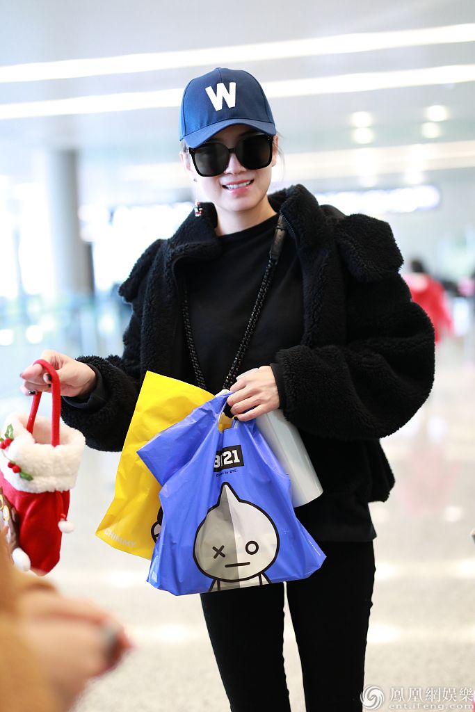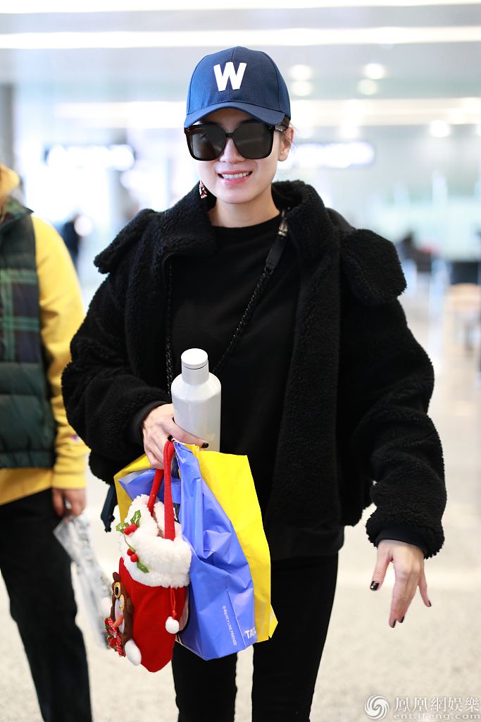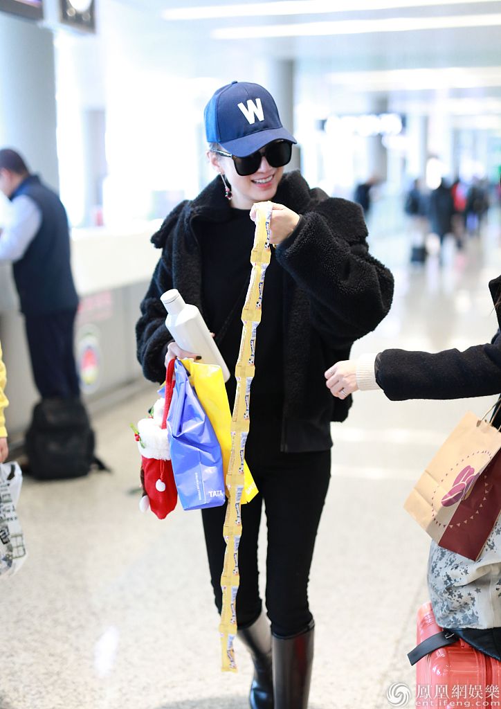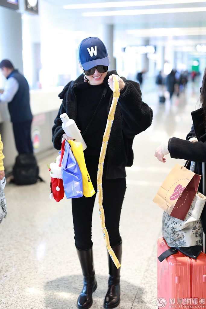 2019年12月12日,上海,宋佳现身机场。她穿黑衣搭长靴帅过男明星,获粉丝赠送棒棒糖、小玩偶等礼物,亲切与粉丝合影笑容比蜜