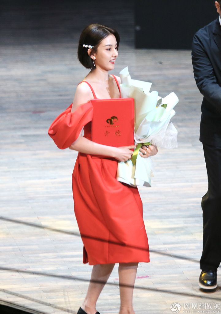 2019年12月11日,广州,宋祖儿、郭富城等出席广州大学生电影节。她一袭吊带红裙现身明艳动人,背手转身样子十分乖巧可爱,弯腰为获奖者颁奖恭敬有礼。郭富城获得第16届广州大学生电影节最佳男主角,54岁的他依旧帅气十足,现场分享人生经