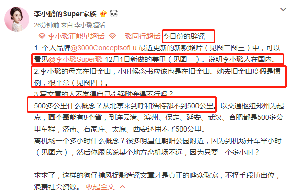 而李小璐后援团深夜发文澄清,从三点来否认: