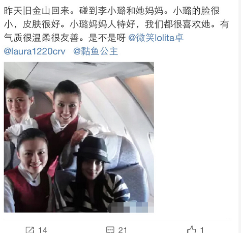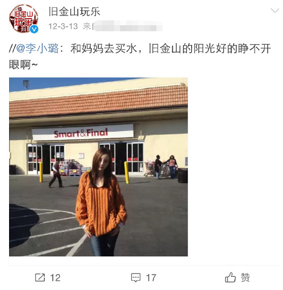 第二点,说李小璐的母亲在旧金山,小时候念书应该也是在旧金山。她去旧金山度假是惯例,很平常,还晒出了图片作为佐证。