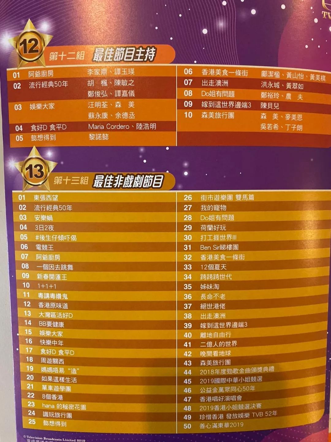 无线年度瞩目盛事《万千星辉颁奖典礼2019》,将于明年月12日(星期日)在将军澳电视城举行,以表扬全台台前幕后过去一年的努力、演艺成就及广受大众欢迎的电视节
