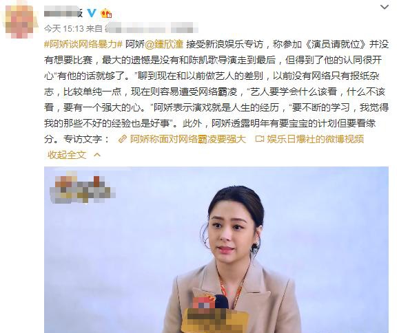 阿娇称自己参加《演员请就位》虽然最终遗憾未能和陈凯歌导演走到最后,但是却因为和他的合作弥补了多年的遗憾。