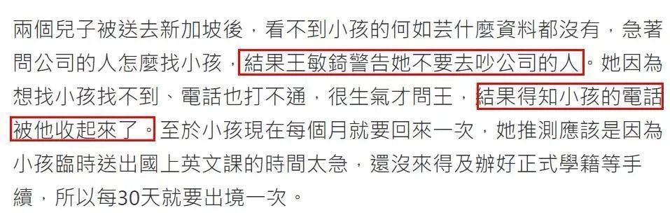 原计划是明年1月份出国陪伴两个儿子,但目前的情况,何如芸还是想去,但不知道王敏锜会不会让她见孩子。