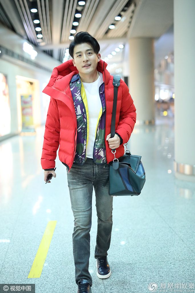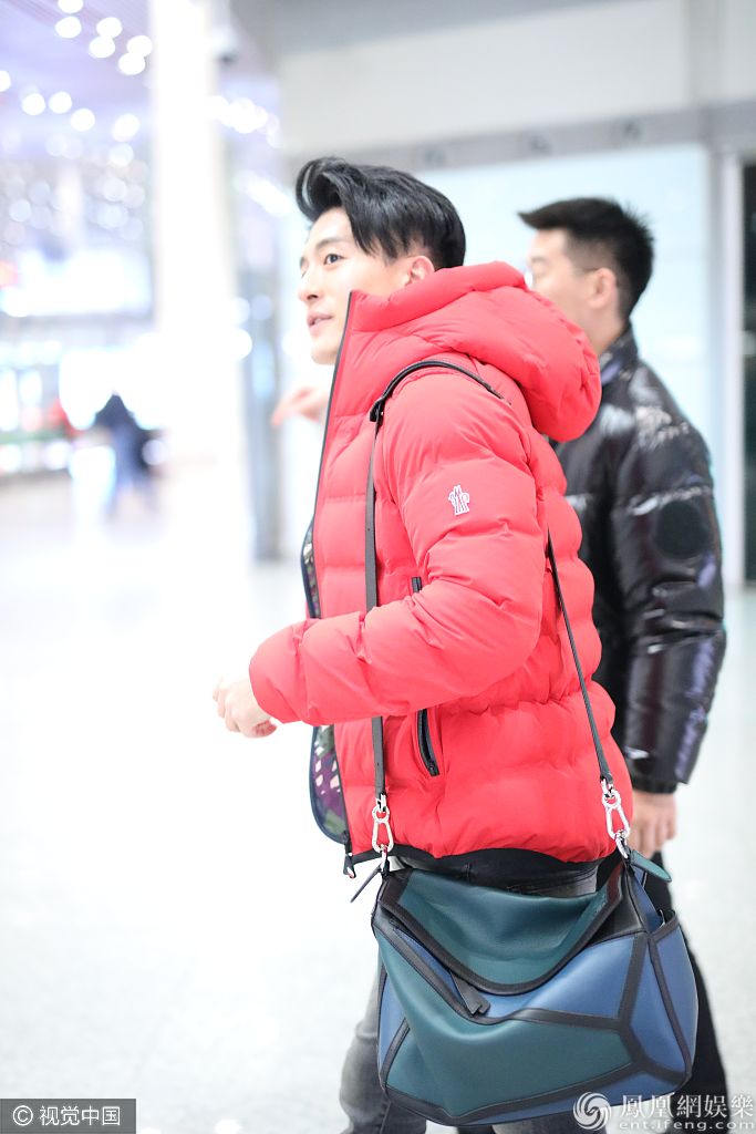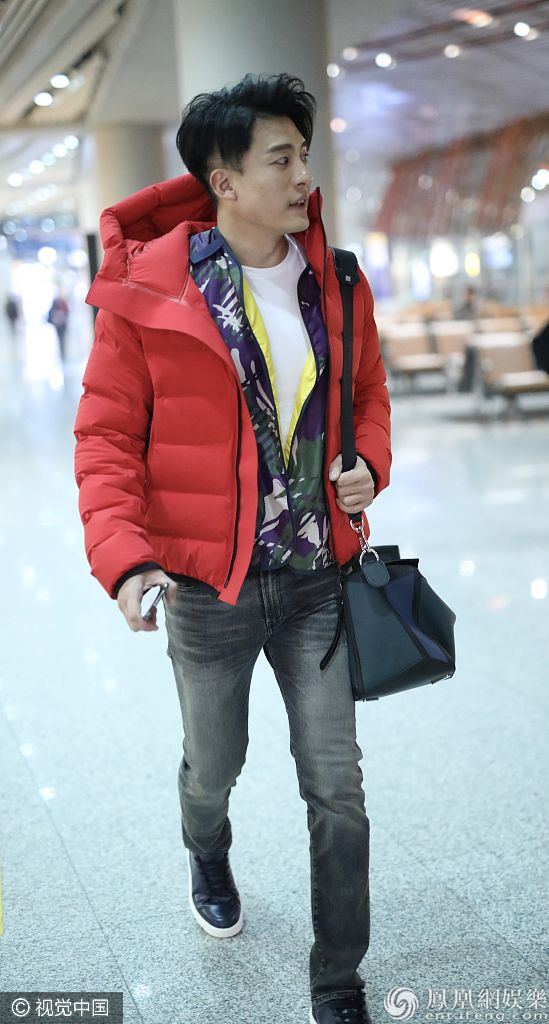 2019年12月8日,北京,孙艺洲现身机场。他叠穿两件羽绒服超保暖,搭配紧身牛仔裤装看新潮,挎包赶路面带浅笑似机场走秀。 图片来源:签约供稿人/视觉