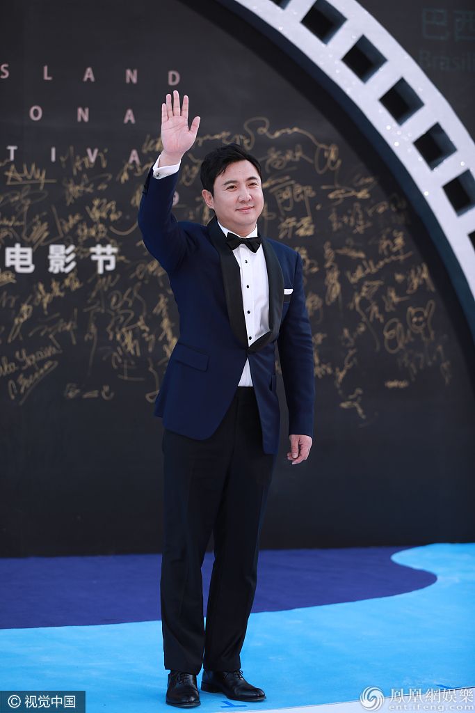 吴京一身正装帅气现身,满面微笑似年画娃娃。 图片来源:骆云飞(海南分社)/中新社/视觉中国