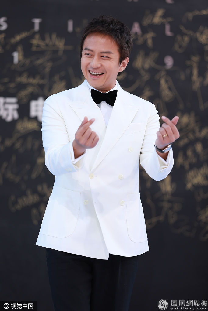 邓超一身黑白look绅士有型,对镜比心卖萌超可爱。 图片来源:视觉中国/视觉中国/视觉中国