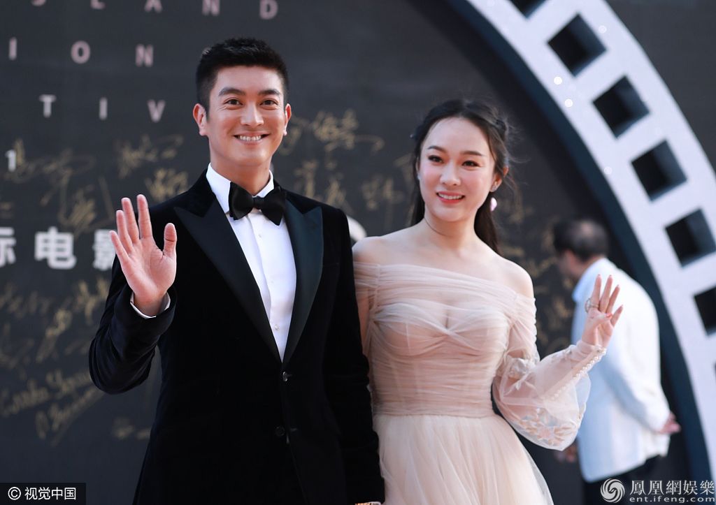 杜江、霍思燕夫妇红毯亲密互动狂撒狗粮。 图片来源:1905电影网/视觉中国