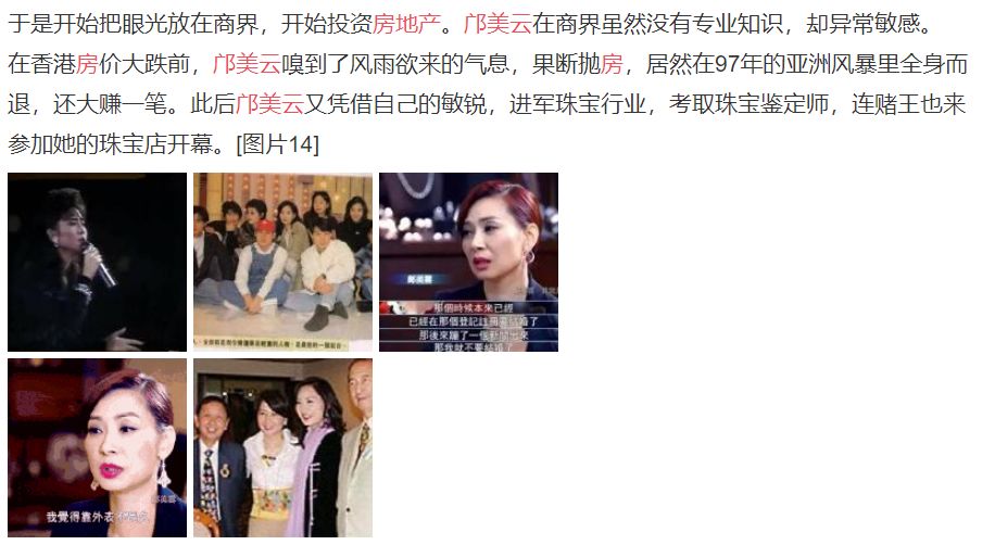 除了房地产,2000年开始,邝美云又投资开设珠宝店,并考取了珠宝鉴定师的证书。珠宝生意红火的同时还在上海开设牙科诊所,现在邝美云的身价据估计有5个亿,真的是名副其实的富婆了。