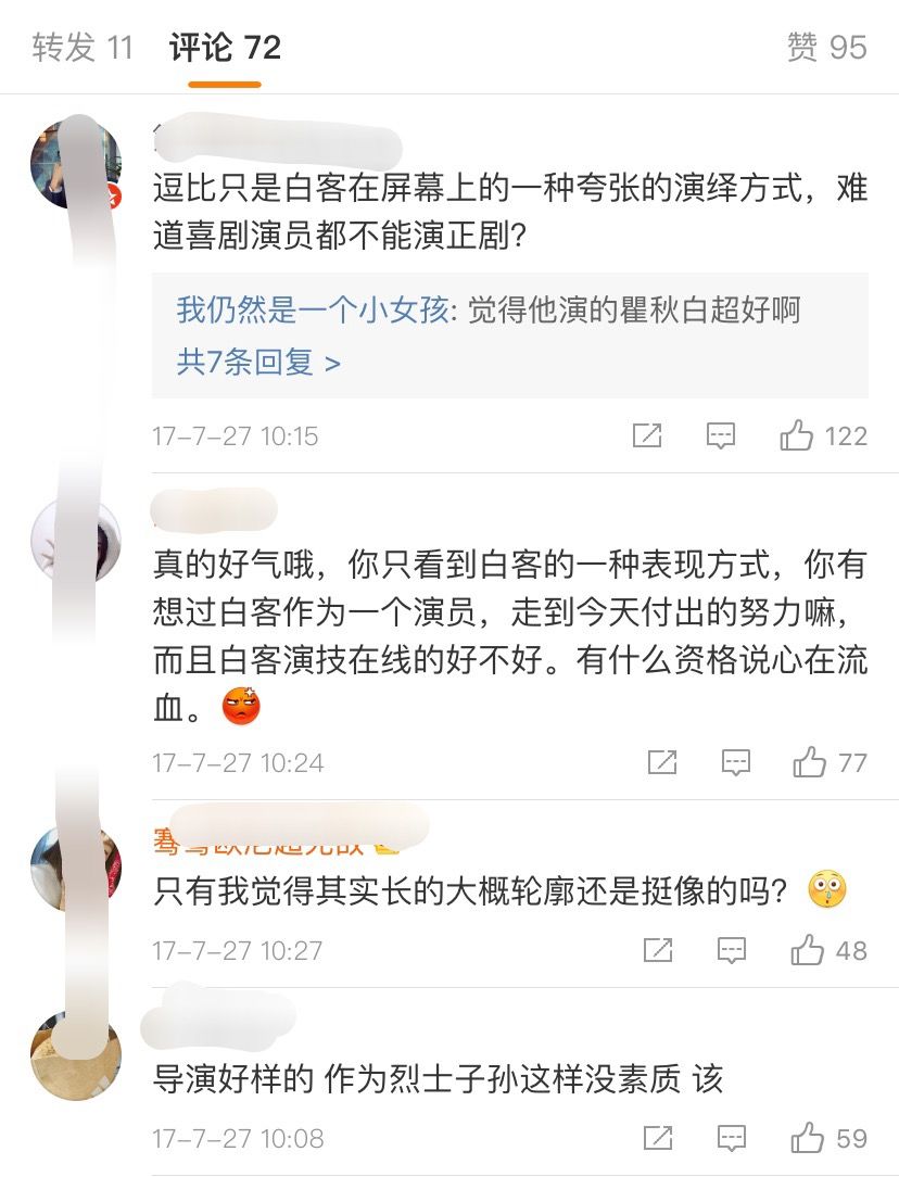 但不得不说白客的路人好感不错,底下评论里网友纷纷为他说话。