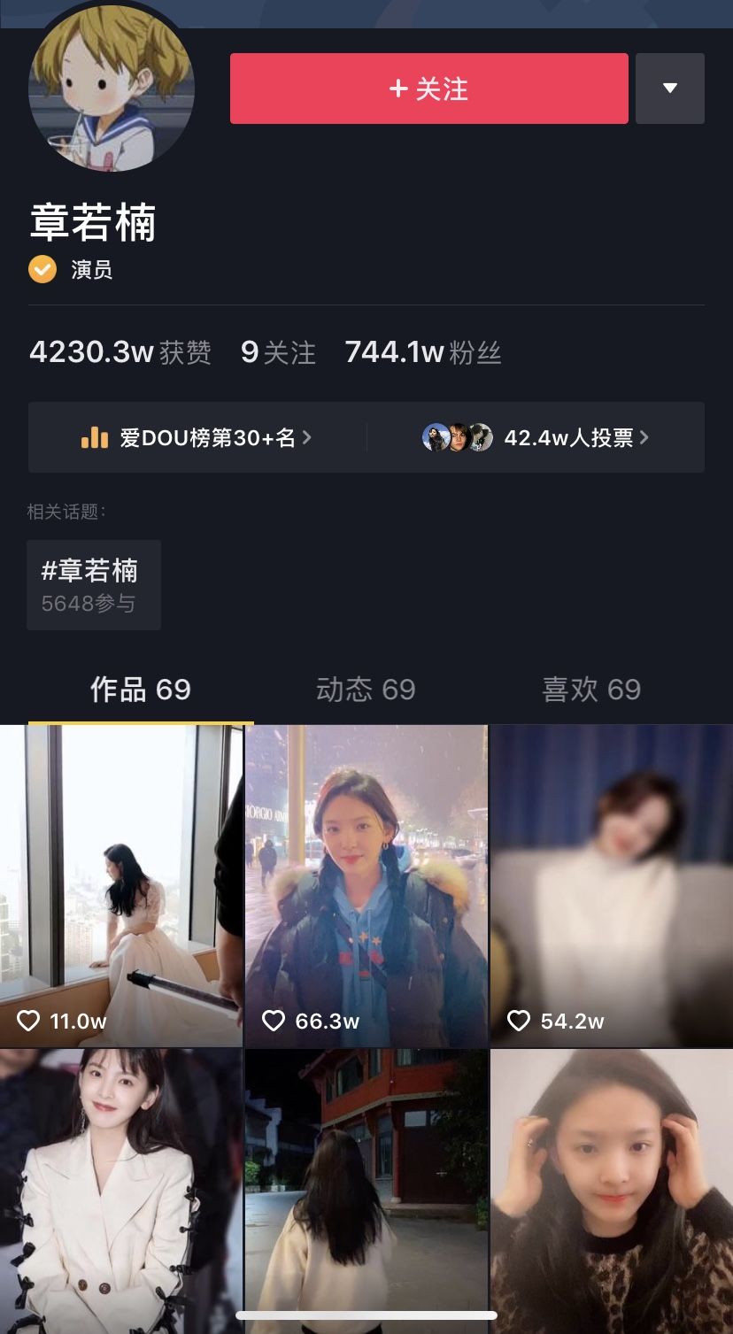 和白鹿一样从网红过渡到艺人的还有章若楠,没出名前她做过淘宝模特,在抖音上章若楠的粉丝可不少。