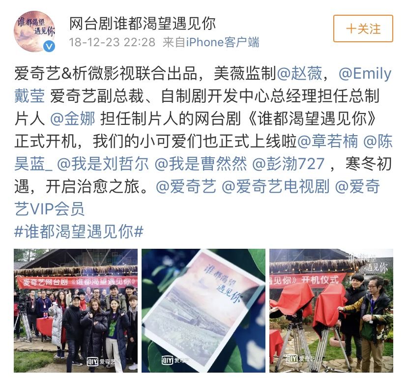 作为事业刚刚起步的小花,章若楠马上会上映的作品是由赵薇监制的电视剧。
