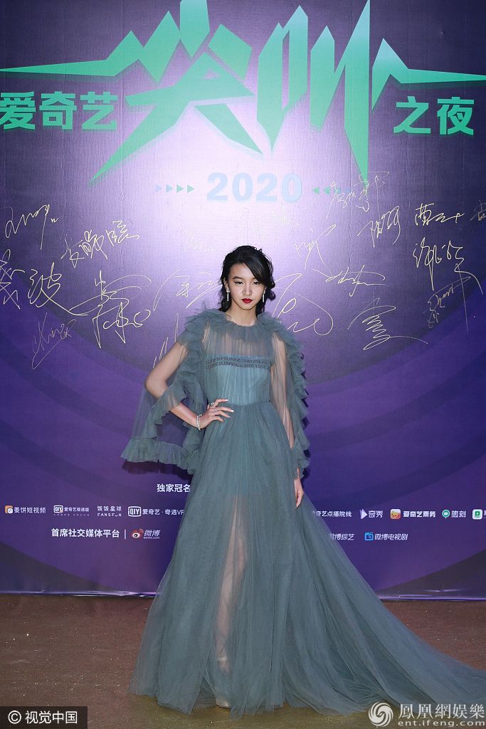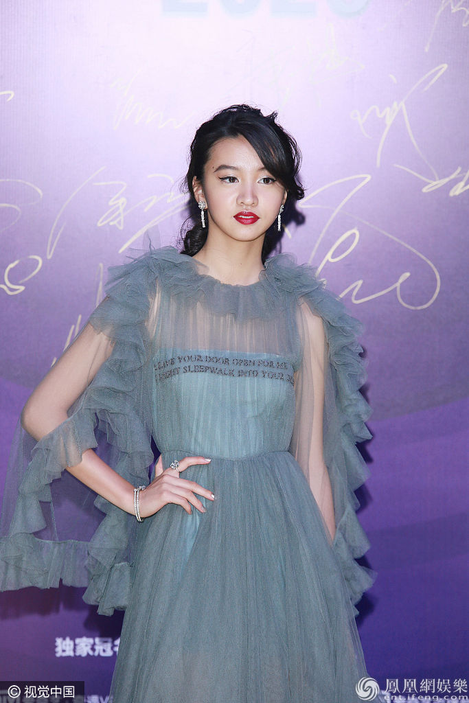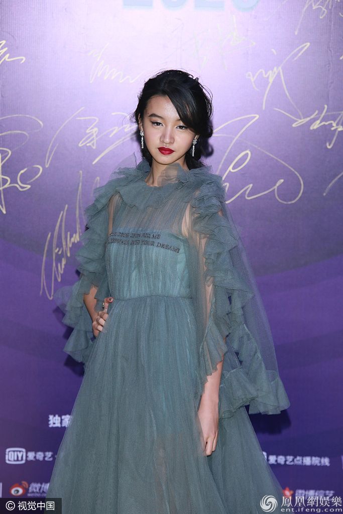 2019年12月6日,北京,2020尖叫之夜演唱会红毯。16岁木村光希身穿蓝色纱裙造型亮相。 图片来源:视觉中国/视觉中国/视觉