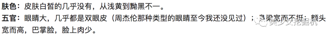 特点就是我们上面所说的,鼻梁宽而不挺;额头宽而高,厚嘴唇,嘴巴都有或多或少的外突,脸上肉少。