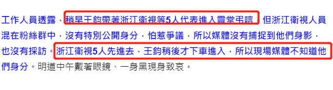 所以这次蓝台派代表去台湾吊唁,自然也是非常谨慎。据媒体报道,高以翔经纪公司的老板王钧带着蓝台的5名工作人员前往灵堂,但是因为5名工作人员混在粉丝群体中,没有特别公开身份,所以一时没有被媒体捕捉到。
