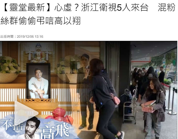 12月6日,高以翔灵堂开放粉丝入内吊唁,众多粉丝早早的就来到灵堂外等候,并且带了鲜花和纸鹤前来祈祷,但据台媒最新消息报道,蓝台的5名工作人员混在粉丝群体中偷偷进入灵堂悼念,身边还有经纪公司护送同行,悼念仅9分钟就低调离
