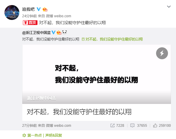 高以翔于11月27日因录浙江卫视《追我吧》猝死,令各界悲痛不已,浙江卫视总监林涌也于昨日(12月5日)受访表示,将永久停播《追我吧》节目,时隔不久,浙江卫视及《追我吧》节目组对高以翔逝世一事进行回应,并对高以翔及其家人、粉丝等表示歉意。