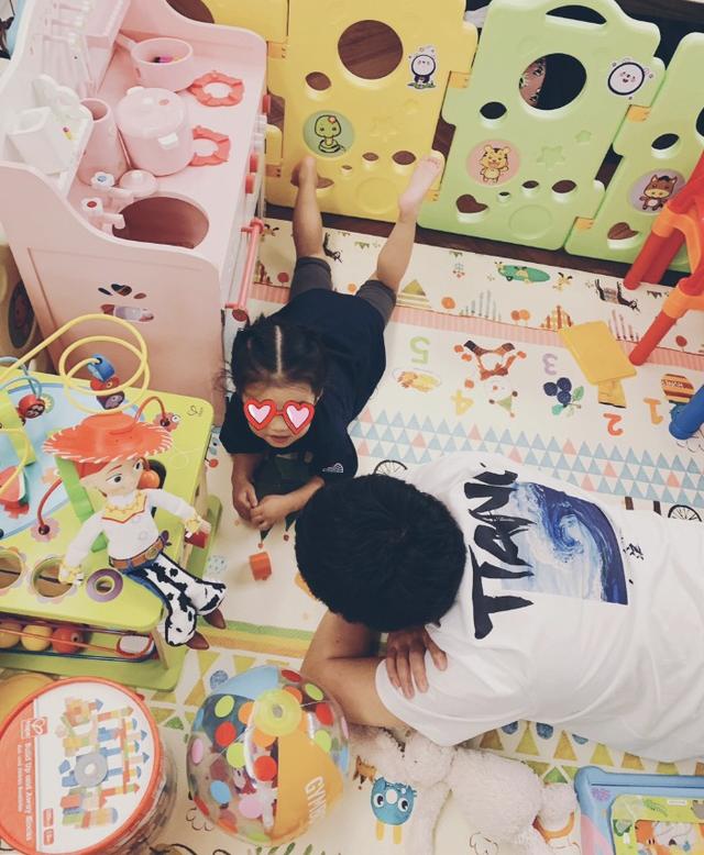陈赫还会陪女儿在游戏区里玩玩具、聊天,像极了安安的好姐妹!