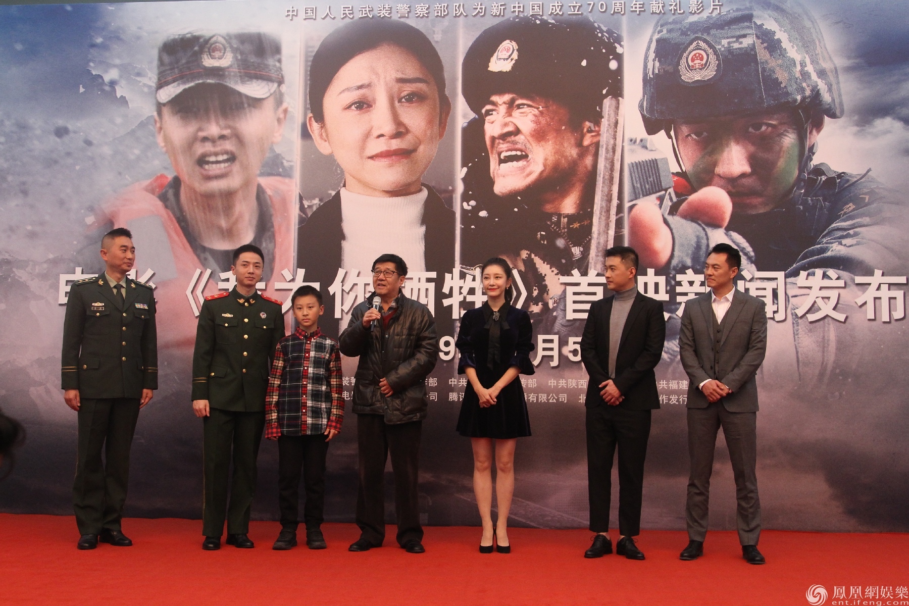 中国人民武装警察部队副参谋长李维杰少将、中共湖北省委宣传部副部长陈树林、中共陕西省委宣传部副部长马川鑫、中共福建省委宣传部副部长叶雄彪代表联合摄制单位分别致辞。中国文艺评论家协会主席、原中国文联副主席、书记处书记仲呈祥盛赞影片《我为你牺牲》是一部经典之作,影片平行叙事,刻画了三位英模可歌可泣的事迹,成功塑造了武警十大忠诚卫士中的典范人物,是一首弘扬新时代正能量的正气歌。湖北长江电影集团有限责任公司董事长陈敦亮代表出品单位致辞。歌唱家高斌为来宾带来影片主题曲,由中国人民武装警察部队副司令员秦天作词、吴鼎作曲的《为你牺牲是我的辉煌》。“为你牺牲是我的辉煌”与影片中武警官兵及家属用生命所诠释的,三个故事统一的“为你牺牲”的主题产生强烈共鸣,与会嘉宾无不动容。影片导演安战军、李琦、国永振、陈姝、魏鹏等主创表示,在5个月拍摄期中,演职员一直用武警的优良作风、奉献精神激励自己战胜高原缺氧、严苛训练等困难。演职员也以敬业精神,将这部精品力作奉献给广大指战员和观众。出席活动的部分院线和影院代表,中国电影股份有限公司北京电影发行分公司王嘉、中影星美电影院线有限公司朱大伟、湖南楚湘影业有限责任公司谭黄劲、四川太平洋院线有限公司程晓瑞、浙江横店影业有限公司徐书杨、北京红鲤鱼数字电影院线有限公司欧阳丹、广州金逸电影院线有限公司戎蒨蒨等也纷纷表示,他们将用长线排映、优惠票价、公益放映、组织放映等形式支持影片的宣传发行和放映。湖北长江电影集团有限责任公司董事长陈敦亮、腾讯影业高级副总裁陈菲代表出品单位向武警部队代表,中国人民武装警察部队政治工作部宣传局副局长卢焱波赠送影片光盘,以方便远在边远哨所的武警战士观看这部“不忘初心,牢记使命”主题教育的优秀教材影片。据悉,影片《我为你牺牲》刚刚在中美电影节获得“金天使”奖杯,出品方代表,佛山锐东文化传媒有限公司董事长李湘穗、西安亚细亚影视制作发行有限公司总经理章海斌向在座嘉宾展示奖杯,共享荣耀。发布会主持人蓝羽邀请国家电影局、武警部队、联合摄制单位、总顾问、出品单位、发行方、著名电影评论家等各方代表上台启动电影公映,预祝影片取得佳绩。