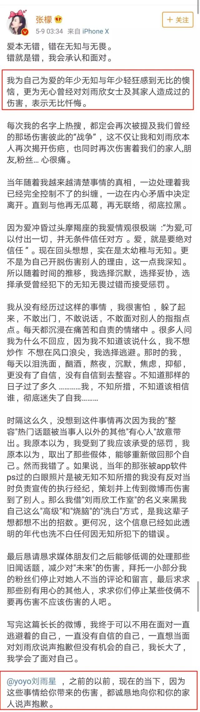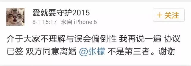 对此,刘雨欣的老公力挺张檬,维护她,称她不是第三者。