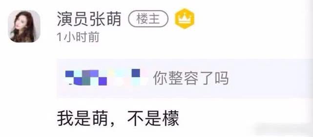 接下来,我们正式开始今天的正文!事情是这样的,张萌为了宣传自己的新剧《安家》发帖子和大家交流,结果帖子下面有人评论道:“你整容了吗?”随后张萌直接回复称:“我是萌,不是檬”!