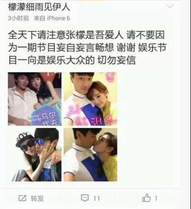 就在这时,张檬的正牌男友突然跳出来宣示主权,发文表示:全天下请注意!张檬是吾爱人。并晒出了几张与张檬的亲密合照。