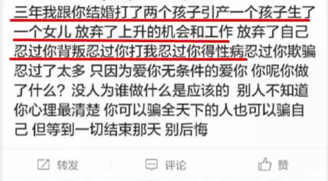 万能的网友顺藤摸瓜,把刘雨欣的小号也给扒了出来。刘雨欣的小号里记录了自己结婚后所经历的一切:为老公堕胎两次、被家暴,甚至是捉奸在床等等。