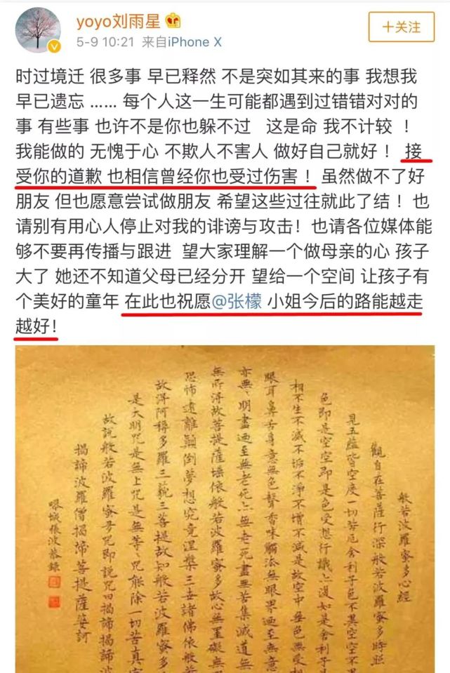 而刘雨欣也挺大度,接受她的道歉,并原谅她当年的插足。