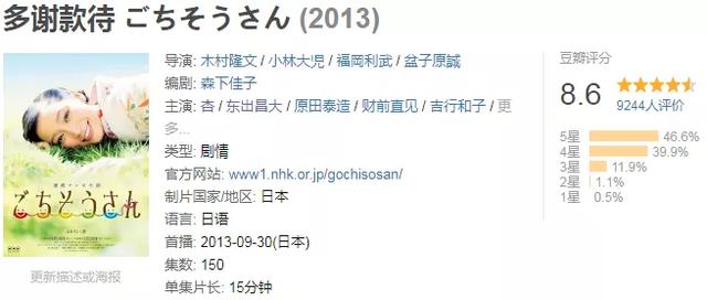 《多谢款待》是一部在豆瓣评分高达8.6分的150集亲情类电视剧。