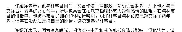 当时,因为当小三“横刀夺爱”而受到舆论谴责的许绍洋表示,自己对感情很认真,因为“管不住自己的心”,才会追求有男友的林韦君。