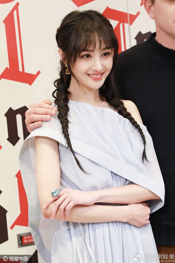 当天郑爽留着齐刘海,梳着双麻花辫随性俏皮。 图片来源:图片io/视觉中国