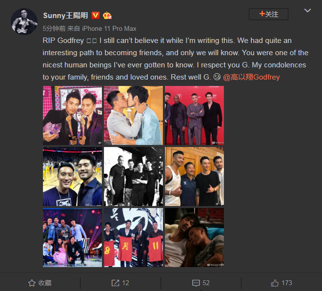 王阳明在文中说道:“当我写下这些话时我依然不敢相信这个消息,我们变成好友的过程是如此有趣,而且只有我们自己才知道。你是我认识的最好的人之一,我是如此的尊敬你。对你的家人、朋友、爱人致以沉痛的慰唁。”