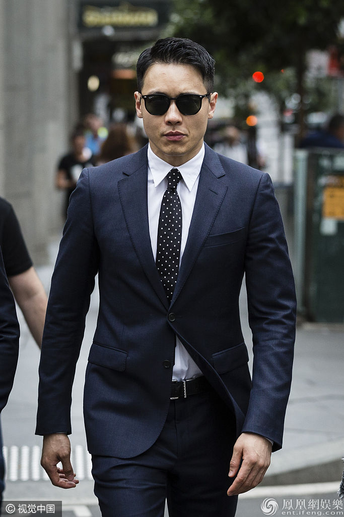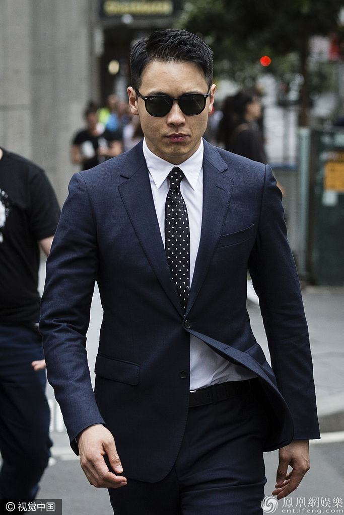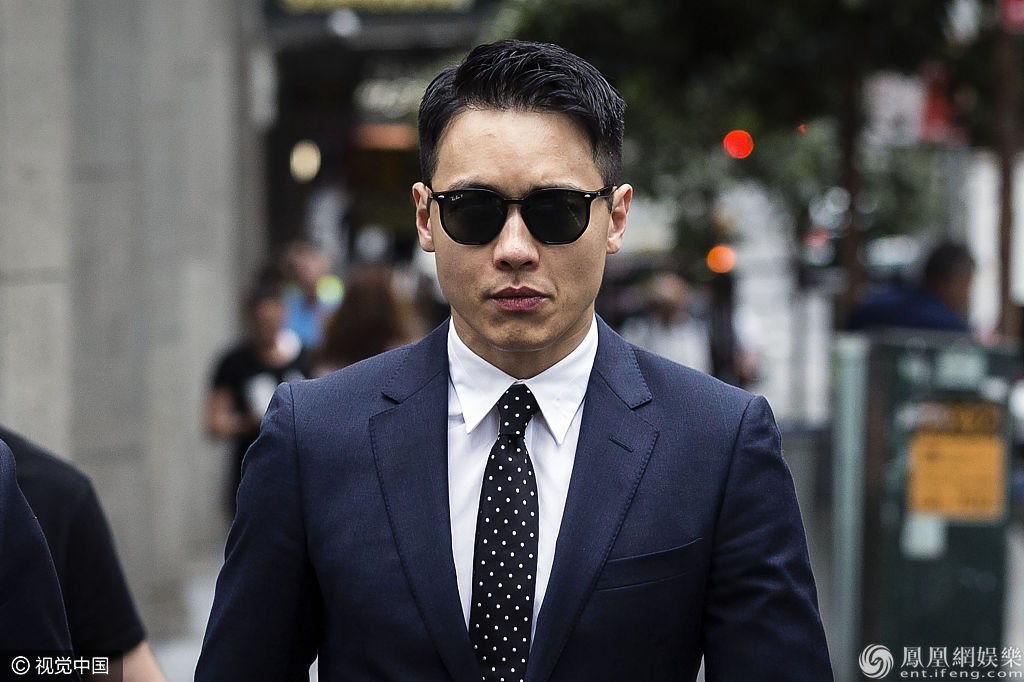 高云翔正装亮相气势沉稳,墨镜遮面神情严肃。 图片来源:Brook Mitchell/视觉中国