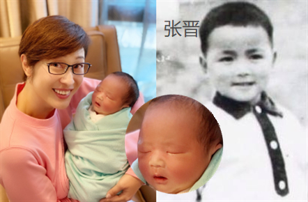 张晋的基因还真是强大,出生没几天的张乐儿已经能看出和爸爸有几分神似了,尤其是小嘴唇和鼻子,简直和张晋小时候的样子一个模子刻出来一样,相信长大后和爸爸一样,也是个颜值高的大帅哥啦!