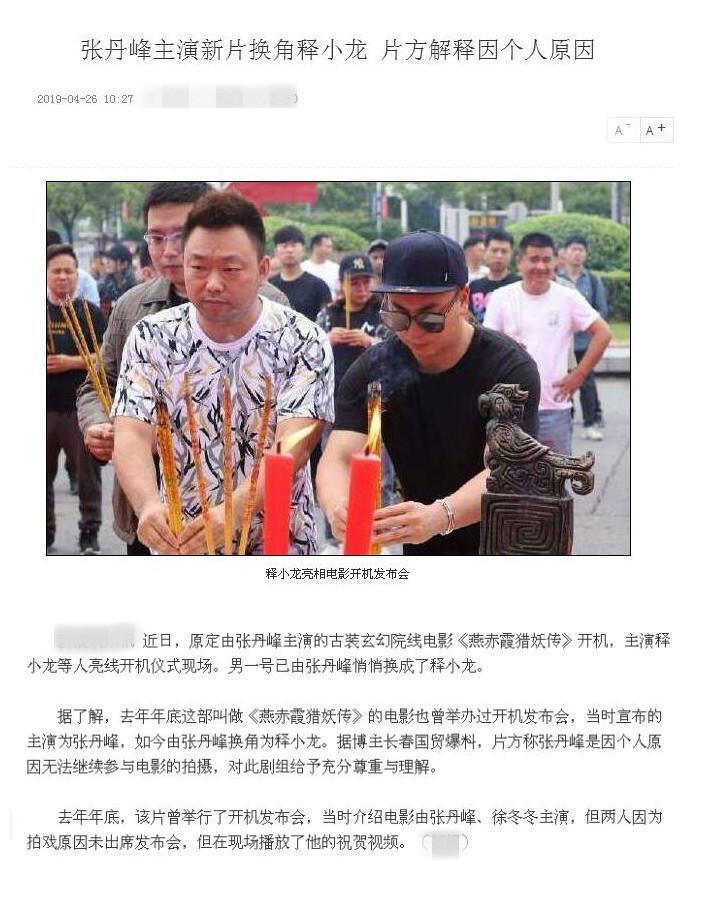 自从张丹峰被曝出与经纪人毕滢的绯闻后,人气急转直下,作品也鲜少播出,今年四月时还遭遇了新片被换角,让人唏嘘不