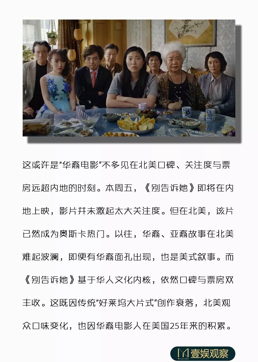 即便如此,或许借助《别告诉她》的北美造势,华裔美国电影的春天正式开启。
