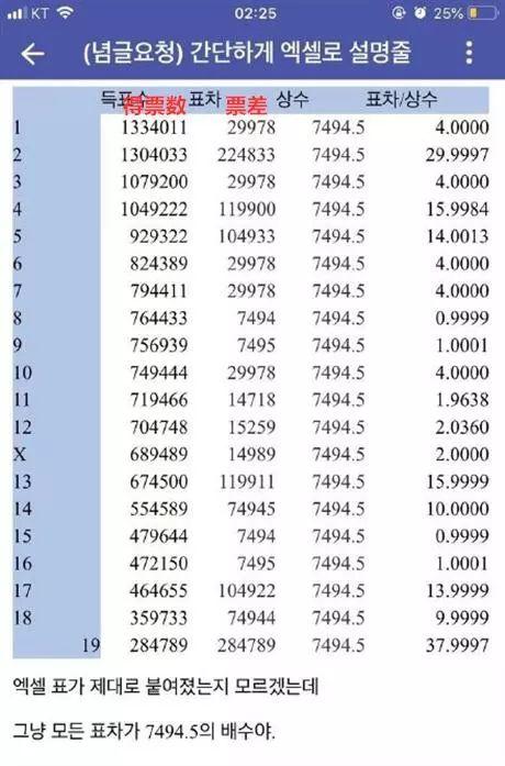 在今年《Produce X101》公布出道位时,出道位中不仅出现了先前一直排名并不靠前的选手,更重要的是从第1位到第20位,练习生们的短信得票数全是7494.5的倍数”,即总投票数的0.05%。